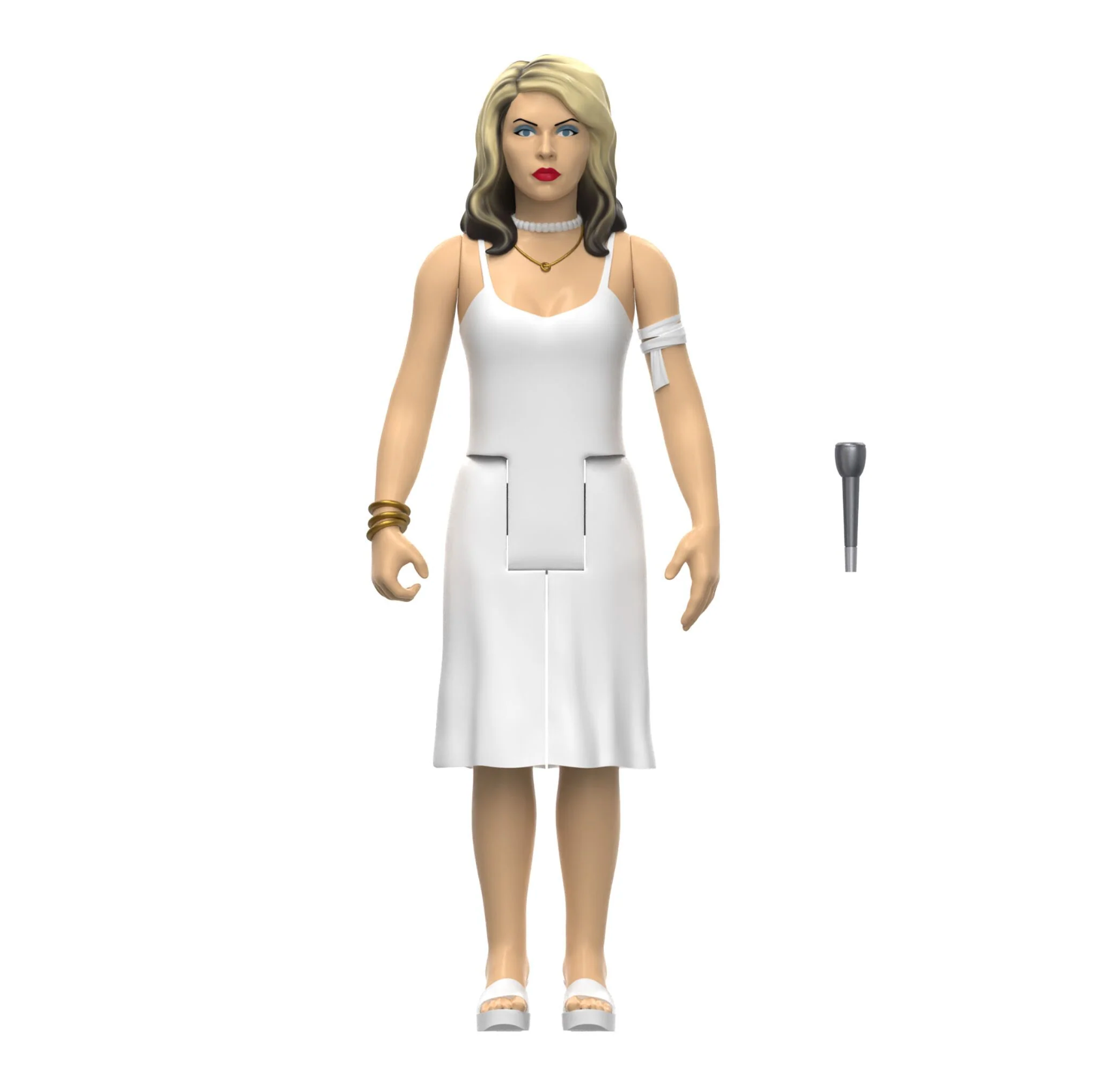 No mere disco-diva, Debbie Harry helped her group Blondie bring elements of disco, punk, rock and new wave music to the mainstream! This 3.75” scale, articulated Blondie ReAction Figure of Debbie Harry is inspired by the cover art from the “Parallel Lines” album and features the lead singer in a white dress with blond and black hair, along with a microphone accessory. One way or another we know you’ll find a way to getcha, getcha, getcha the Blondie ReAction Figure of Debbie Harry from “Parallel Lines”!